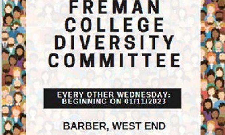 The Freman College Diversity Committee meet once a fortnight in Barber from 1:30pm - 2:00pm on Wednesdays. The group discusses diversity within Freman College.